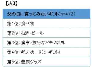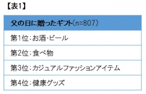 ギフトとして最も好まれるのは、好みが分かりやすく、気軽にプレゼントできる「お酒・ビール」、「食べ物」が人気だった。第3位には、日常的に身に着けられる「カジュアルファッションアイテム」が入り、第4位には昨今の健康志向の高まりもあって「健康グッズ」がランクインした。