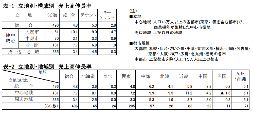 立地別にみると、中心地域は7.7%増、周辺地域も3.4%増となった。なかでも中心地域・大都市がインバウンド客などの来館により好調だった。関東は前年同月比4.8%増、中部は6.2%増、近畿は5.8%増。インバウンドや観光客でにぎわった北陸4.1%増、九州・沖縄は5.1%増。