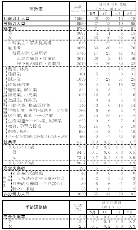 5月労働力調査|就業者数6766万人/卸・小売業の就業者は前年より16万人増