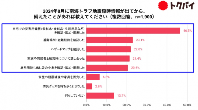 トクバイnews|防災対策調査/南海トラフ情報後、半数が「備蓄を確認」