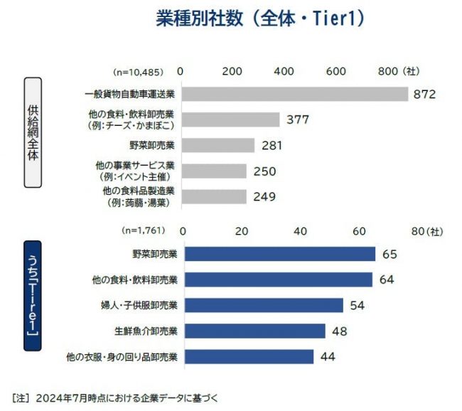 調査結果によると生鮮品を供給する企業や、テナント出店などで取引があるサプライチェーン企業の総数は、2024年7月時点で国内に1万0485社。これによって派生する売上高(=取引高)は1兆7706億円。