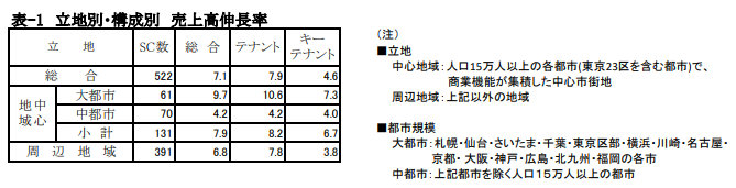 立地別にみると、中心地域は総合で7.9%増、周辺地域は6.8%増となった。ともにブラックフライデーなどのセールに合わせた館のポイント施策などが売上げを押し上げた。
