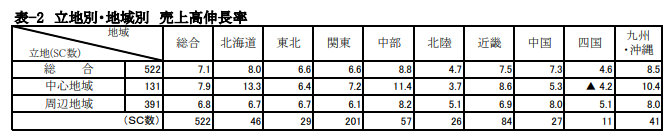 地域別では、中部がもっとも高く8.8%増。館の周年企画やポイント施策、館内・近隣イベントの開催により来館客が増えたことで売上げ増につながった。次に九州・沖縄が8.5%増、北海道が8.0%増、近畿が7.5%増。中国が7.3%増、東北と関東が6.6%増、北陸が4.7%増、四国が4.6%増と、全地域が前年を上回った。