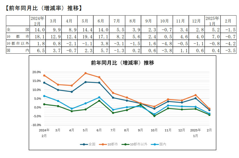 (一社)日本百貨店協会(東京都中央区、好本達也会長)が2025年2月の「全国百貨店売上高概況」を発表した。調査対象は、70社179店。
