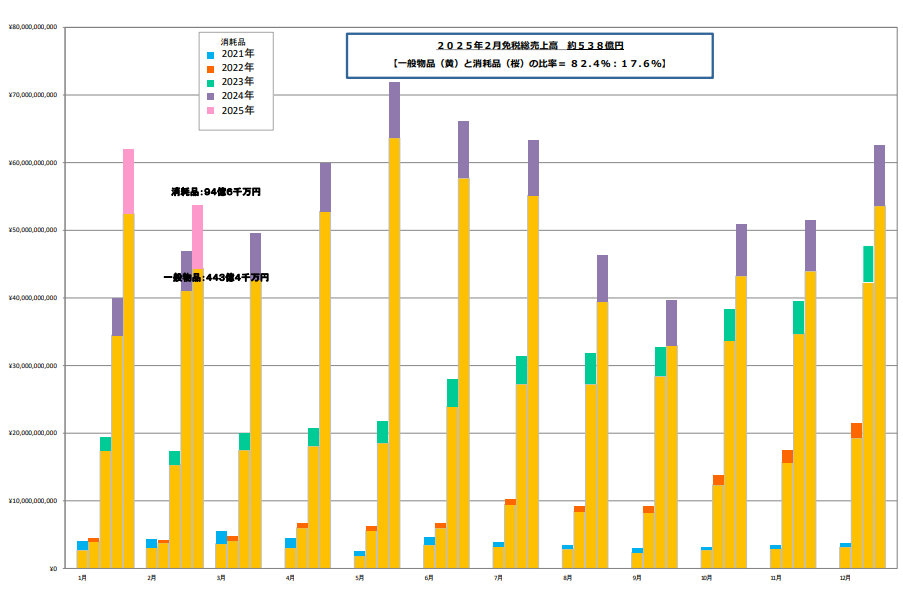 (一社)日本百貨店協会(東京都中央区、好本達也会長)のインバウンド推進委員会が、2025年2月の「外国人観光客の売上高・来店動向」を発表した。調査対象はインバウンド推進委員店の87店舗。