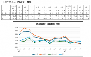 (一社)日本百貨店協会(東京都中央区、好本達也会長)が2025年4月の「全国百貨店売上高概況」を発表した。調査対象は、70社178店。