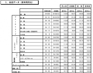 ファミリーレストラン業態の売上げは110.4%。大型連休や母の日などのハレ需要が例年通りの賑いとなったほか、引き続き、低価格業態やお得なセットメニューが好調で、「洋風」は108.5%。「和風」は、食べ放題の店舗が引き続き好調。一部とんかつ専門店ではインバウンド需要が旺盛で 111.4%。「中華」は、各種キャンペーンの好調が続き、116.3%となった。「焼き肉」は、若年層向けのフェア開催により平日集客が好調で 109.6%となった。