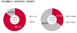 政府備蓄米の一般販売について「知っている」と回答した人は86.1%と高い認知率となった。しかし、実際に店頭で販売されているのを「見たことがある」と答えた人は34.3%にとどまった。