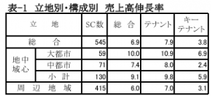 立地別に見ると、中心地域は総合で9.1%増、周辺地域は6.0%増となった。地域の祭りや花火大会、コンサートなどのイベント開催が館の集客につながったSCが多かった。大都市を中心にインバウンド客の増加も見られた。また周辺地域はテナント入れ替え・改装効果があったSCが好調だった。