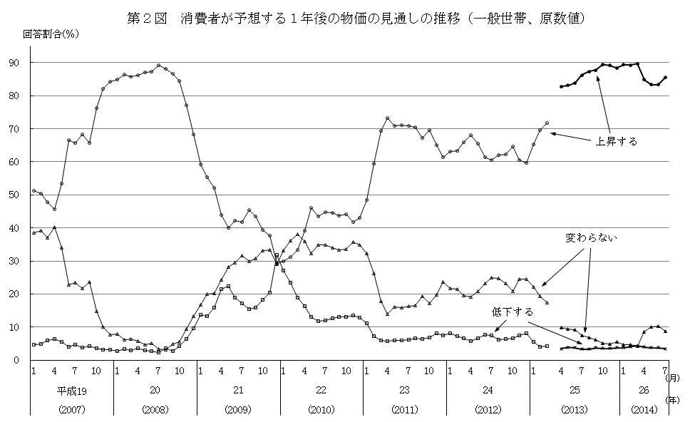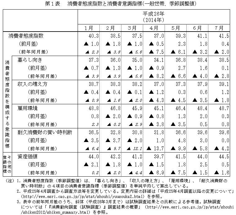 内閣府から「2014年7月の消費者動向調査」が発表された。