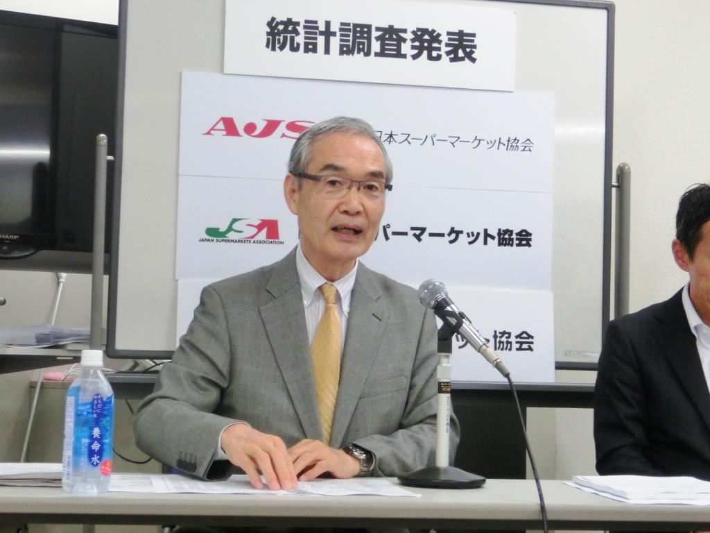 今月の発表はオール日本スーパーマーケット協会が担当。専務理事の松本光雄さんが発表。