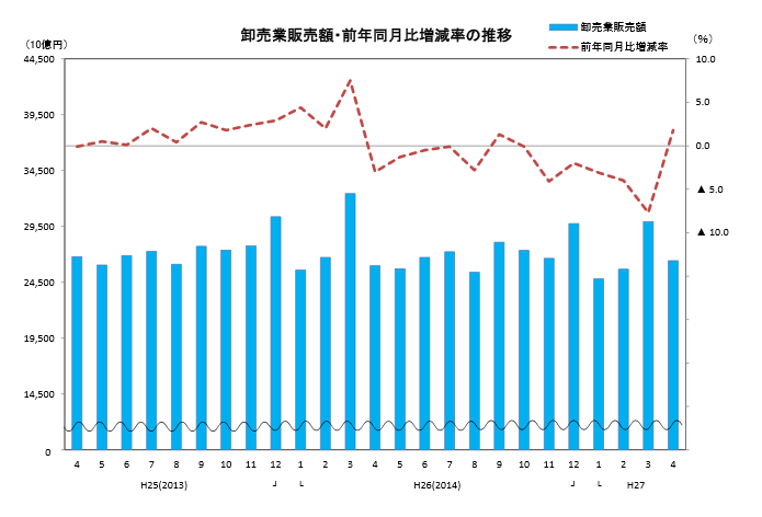 1.卸売業の販売額は、26兆4350億円(前年同月比 プラス1.8%)。