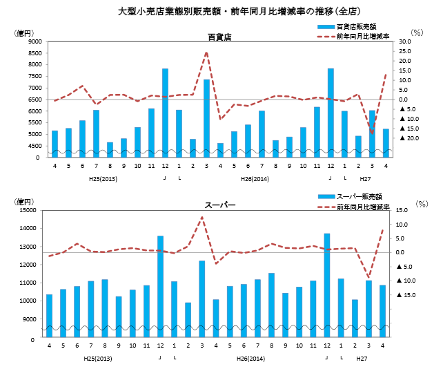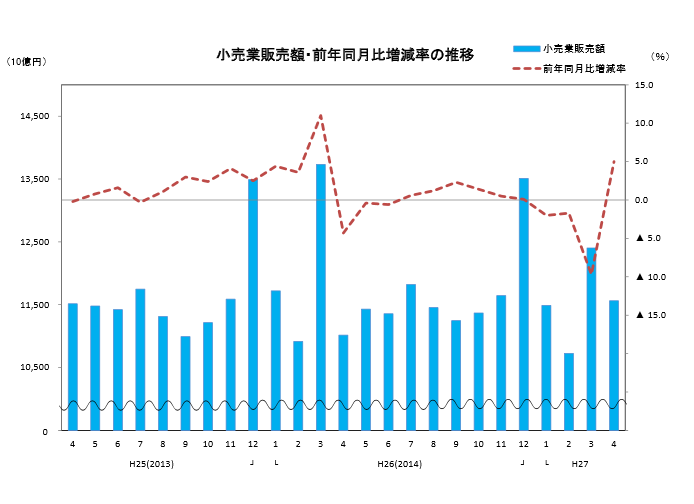 平成27年4月商業動態統計速報は前年同月比で著しい消費回復を示した!!