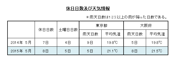 第1は、今年の5月は、ゴールデンウィーク(GW)を含む土日休日数が前年より多かったこと。