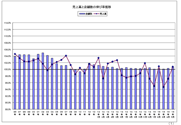 (表はすべて(一社)日本フードサービス協会・外食産業市場動向調査 平成27年5月度結果報告より)