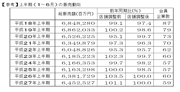 日本チェーンストア協会は27年1月~6月までの上半期の販売動向も発表した。
