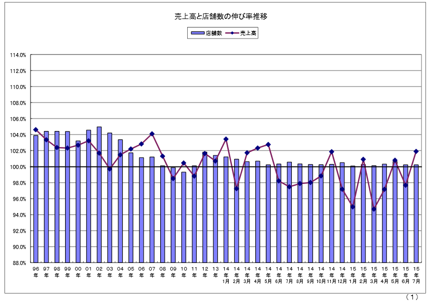 (表はすべて(一社)日本フードサービス協会・外食産業市場動向調査 平成27年7月度結果報告より)