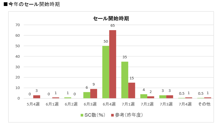 ただ、昨年と比較すると7月1週に遅らせたSCが増え、昨年の15%から今年は35%と、20ポイントの増加となった。