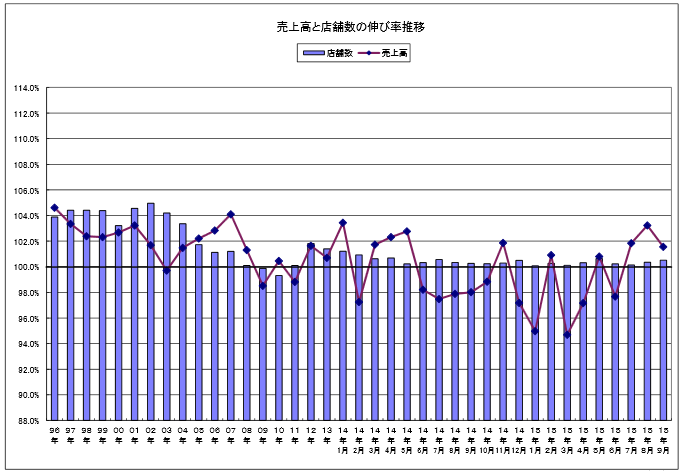 (表はすべて(社)日本フードサービス協会・外食産業市場動向調査 平成27年9月度結果報告より)