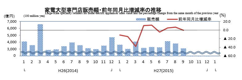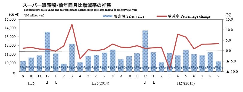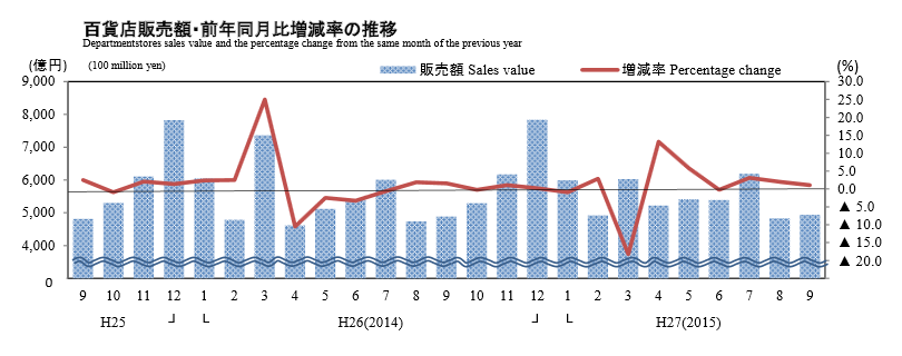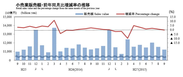 平成27年9月分の商業動態統計速報が、経済産業省から発表された。