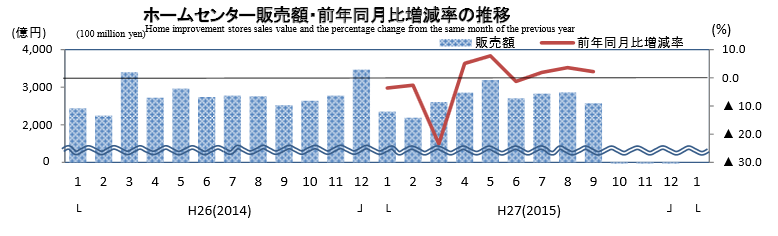 販売額は、1兆5114億円(前年同月比プラス2.6%)。季節調整費はプラス0.4%となった。