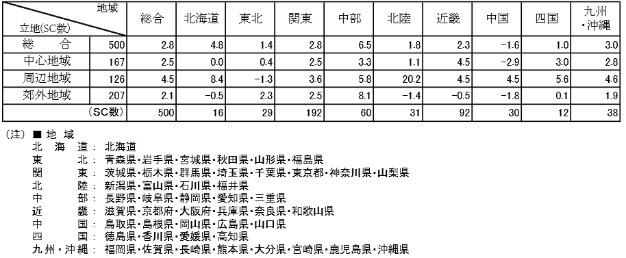 (表は全て一般社団法人日本ショッピングセンター協会 SC販売統計調査報告2015年10月より)