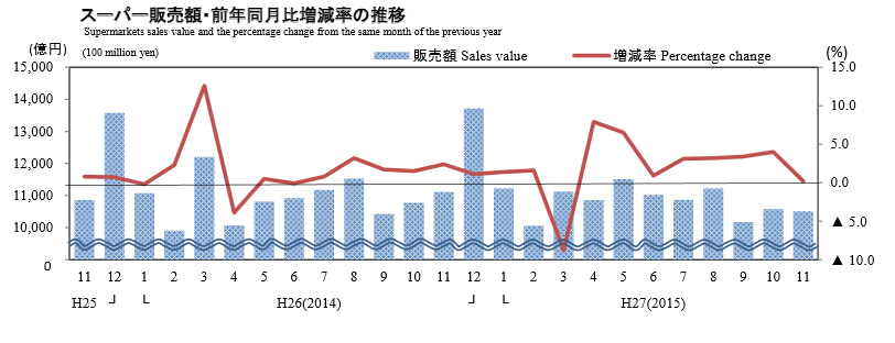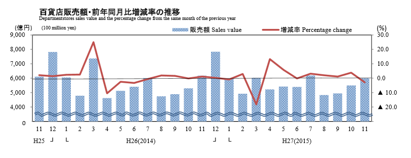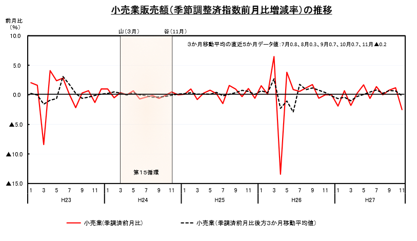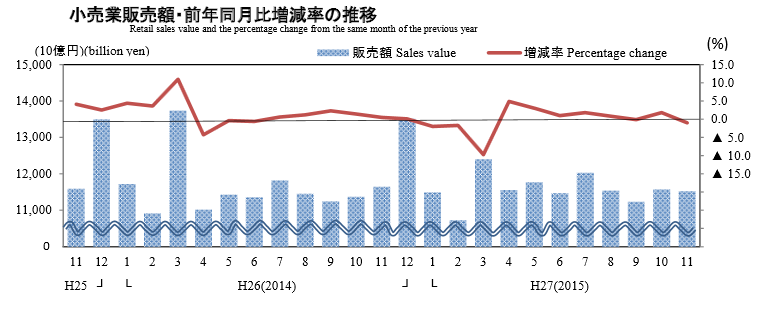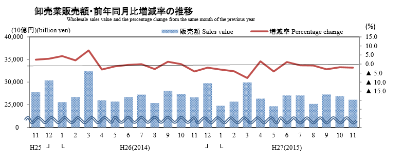 平成27年11月分の商業動態統計速報が、12月28日の今日、経済産業省から発表された。経済産業省も御用納め。