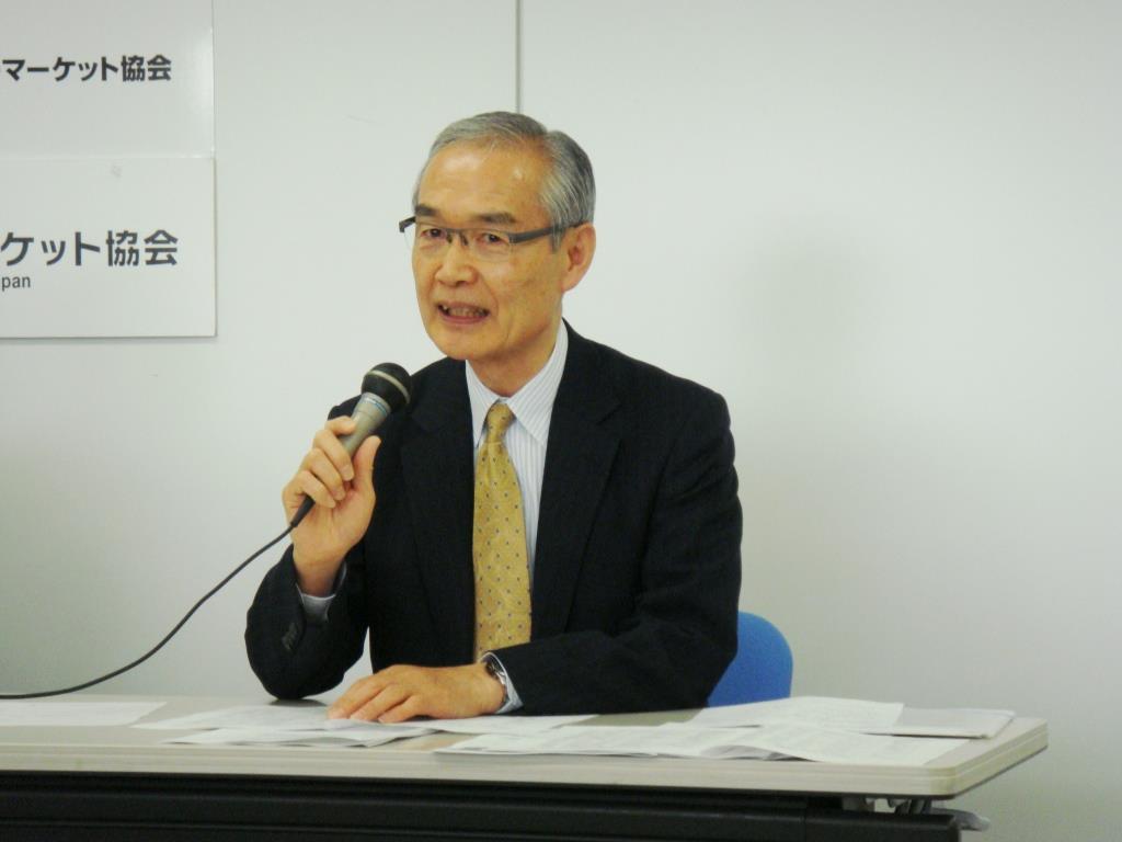 今月はオール日本スーパーマーケット協会(AJS)が発表を担当。2016年最初の発表者はAJSの松本光雄専務理事。