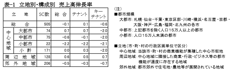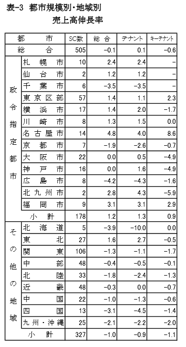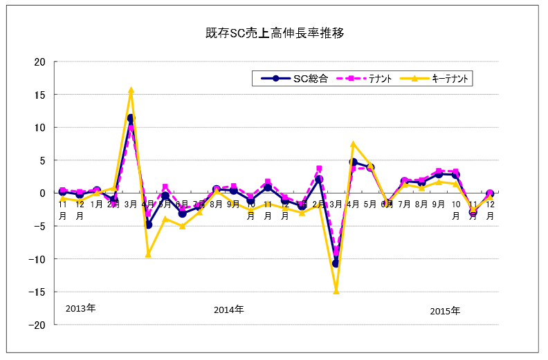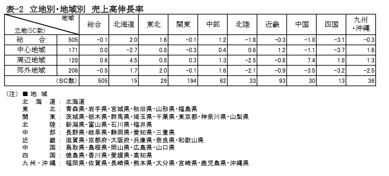 (表は全て一般社団法人日本ショッピングセンター協会 SC販売統計調査報告2015年12月より)