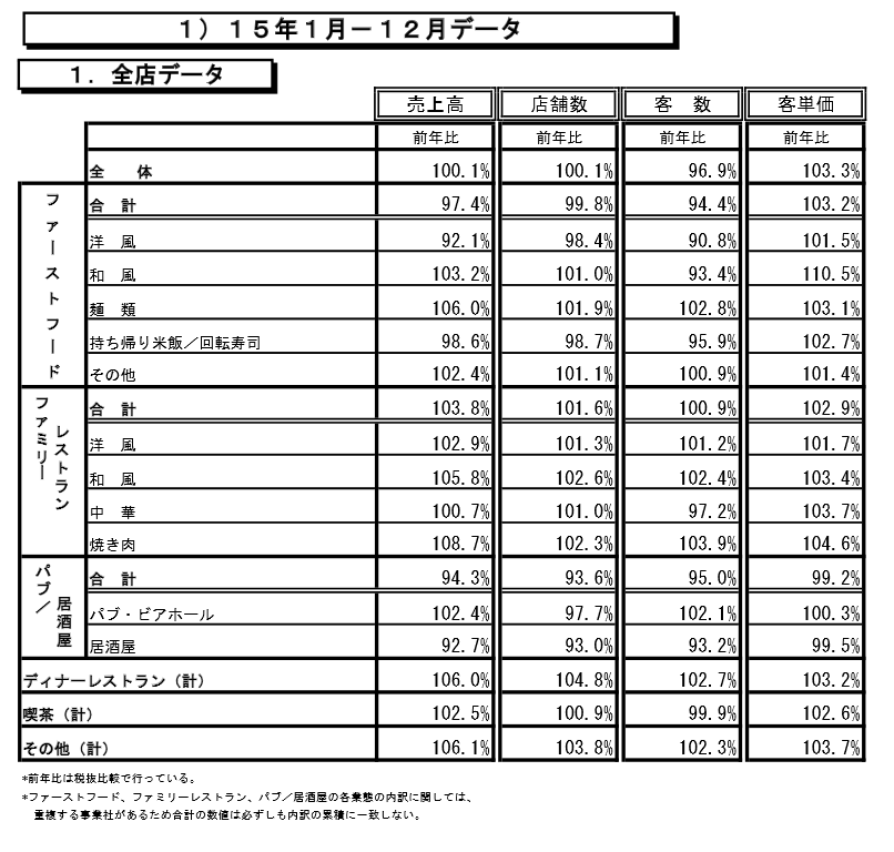 外食産業も2015年1年の報告があった。