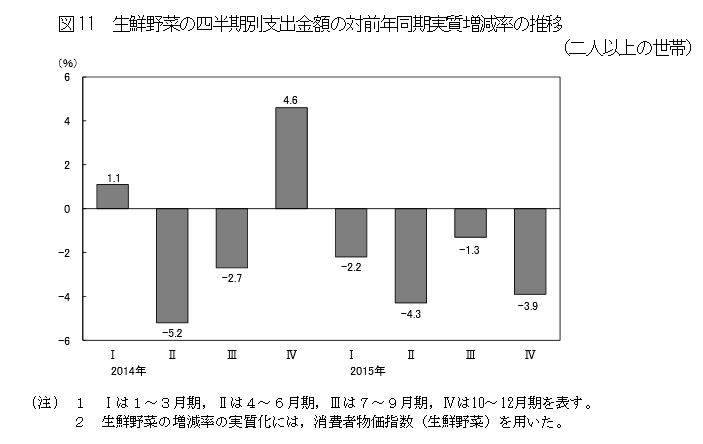 とくに4~6月期は、日照時間不足などによる価格上昇の影響を受け前対比実質 4.3%の減少。