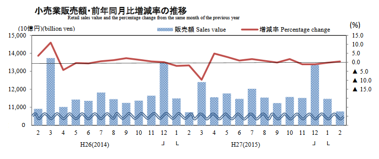 2月の商業動態統計速報が発表された。各協会からの業態別売上速報をDaily商人舎で随時報告しているが、最後はこの経済産業省からの報告である。各協会の発表と比較しながらみてみよう。