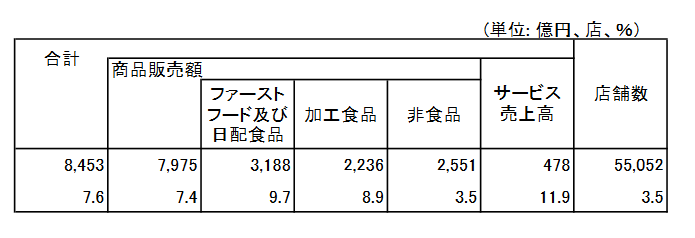 商品販売額及びサービス売上高は8453億円で、プラス7.6%。
