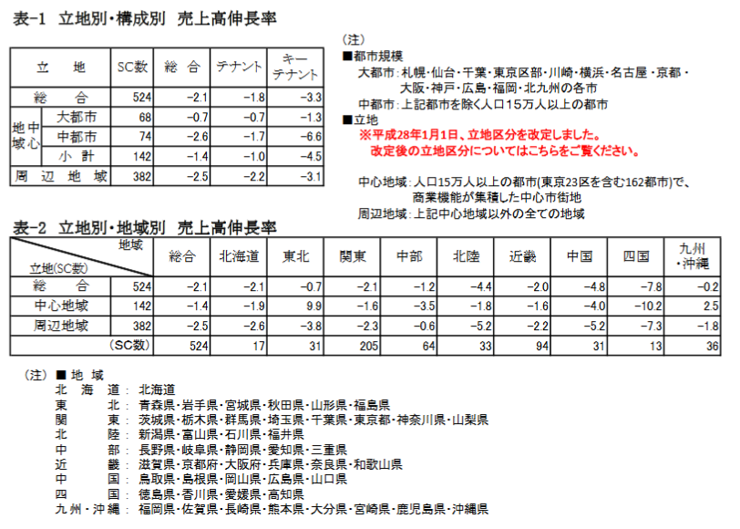 立地別・地域別の下記表を見ると、全国的に厳しい数字となっている。(表-1,2参照)
