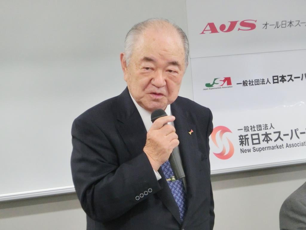 会見中に急きょ、新日本スーパーマーケット協会の横山清会長が登場した。