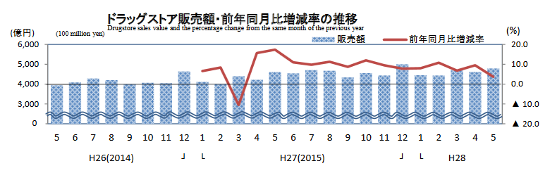 検索ワード : 経済産業省 商業動態統計調査 5月動向 ドラッグストア 後方3カ月移動平均