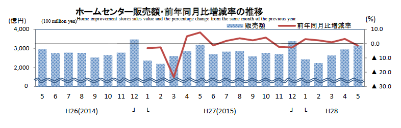 一方マイナスは、スーパー(▲0.1%)、ホームセンター(▲1.4%)、