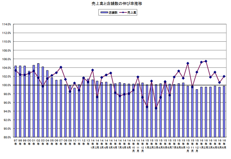客単価は▲0.2となったが、店舗数が4.2%プラスと増加しており、売上高は2.8%プラス。