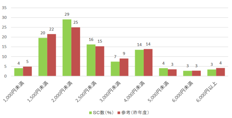 1日当たり平均売上高は昨年対比▲1.7%、1日当たり平均レジ客数は▲0.7%、1回当たり客単価は▲1.3%といずれも昨年を下回った。好調と回答したのは、全体の36%。これは昨年より7ポイントの低下となった。好調、不調の要因にアパレルが挙がっており、バーゲンセールの中心であるアパレルの売上げがSCの動向を分けた。