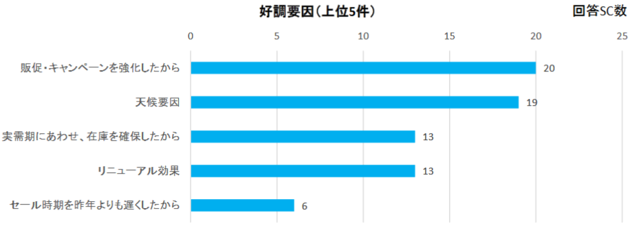セールに関する主な意見等で、好調要因、不調要因の上位5件が挙げられている、この中で協会が指摘する意見は下記のとおり。