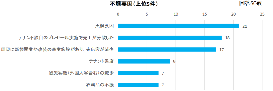 いまやテナントごとにセールは日常的に開催されている。それらとの差別化にどう取り組んでいくかが今後の課題である。また天候要因は好調、不調どちらにも挙げられている。セールの目玉であるアパレル関係にとって、毎週のように台風が発生した今年の夏はダメージが大きかった。
