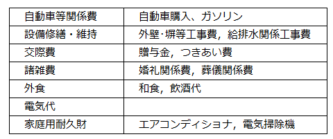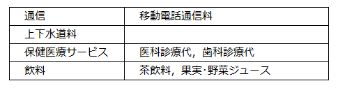 消費支出の内訳は下記表のとおり。