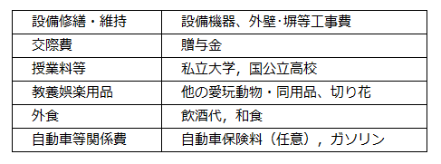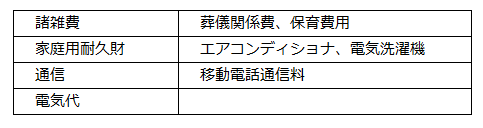一方、減少項目は、食料、住宅、被服及び履物、保健医療、教育、その他の6項目。
