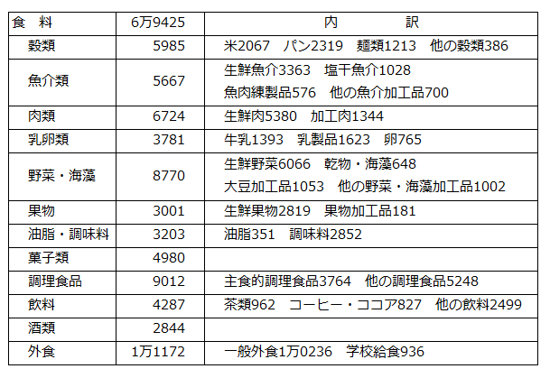 では、食料費(6万9425円)の内訳はどうだったのか。