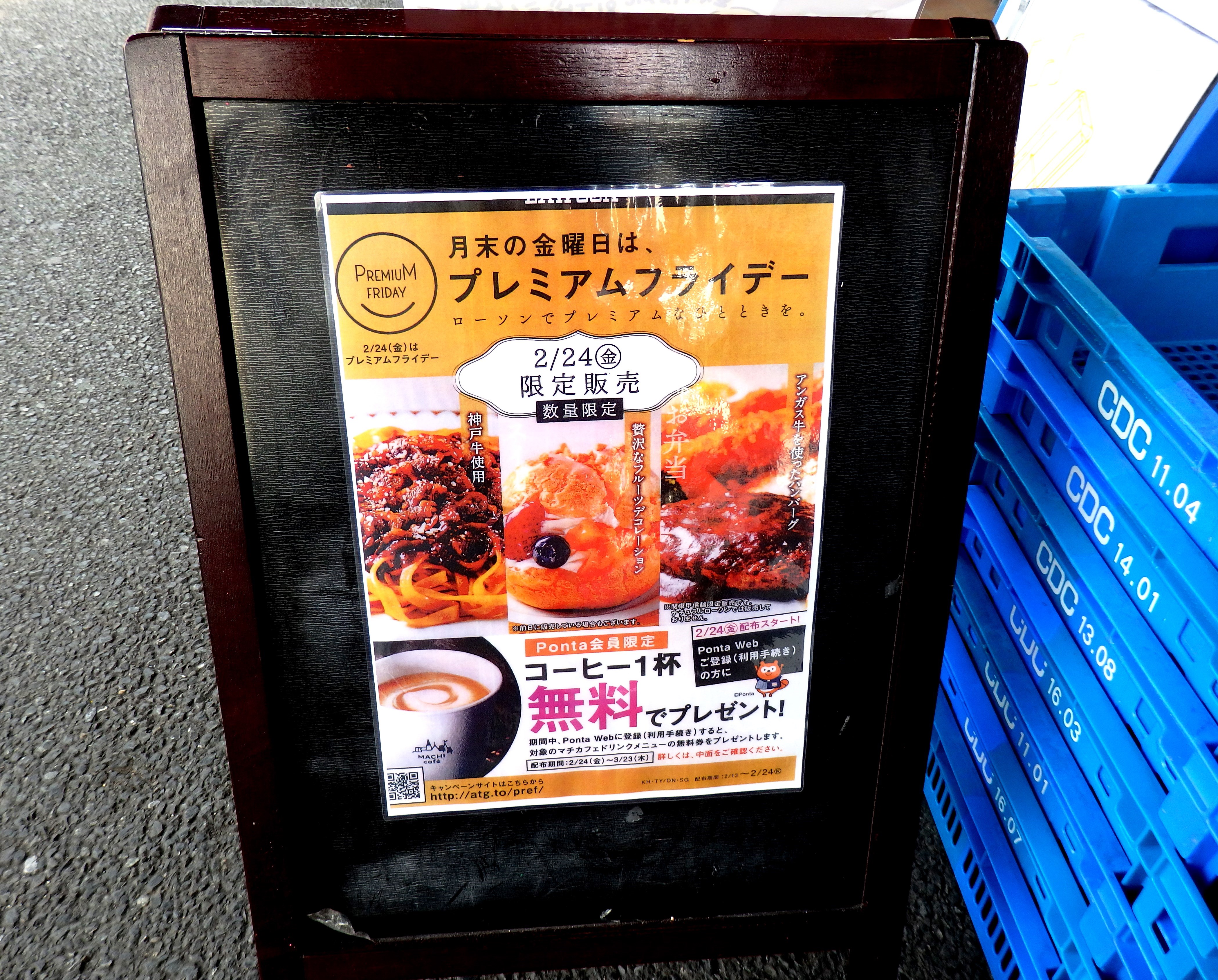 ローソンは「月末金曜日は、ちょっと豊かに過ごす」というプレミアムフライデーの主旨に合わせて、厳選食材を使用した通常よりも少し贅沢な商品を用意する。また「セール企画」として、コロッケ・メンチなどの20円割引き、Ponta Web登録者に「コーヒー1杯無料券」のプレゼントを実施。