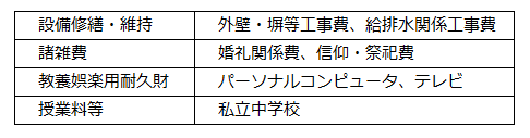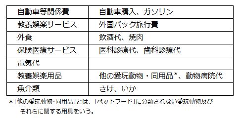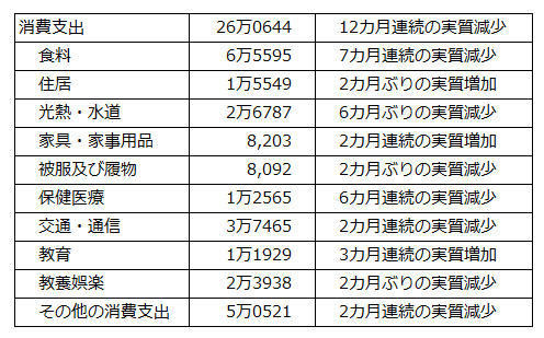 消費支出の内訳は下記表のとおり。
