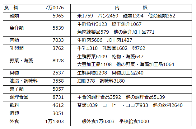 食料費(7万0076円)の内訳。