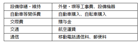消費支出の内訳は下記表のとおり。