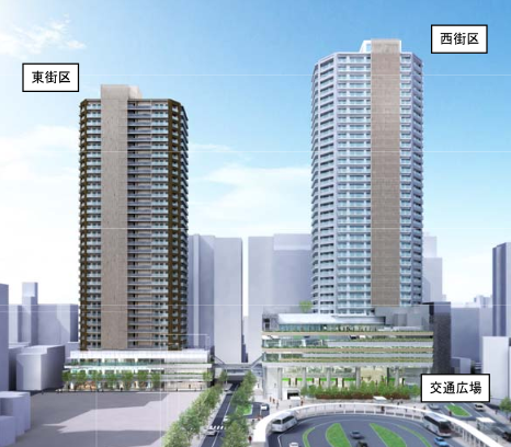 今回申請されたのは西街区ビルでこの事業の一環である。地上36階地下3階建で、このうち、地下1階~地上4階は三越伊勢丹グループが出店を予定する店舗フロアとなる。5階は公益業務施設、そして6階~36階は住戸フロア。東街区棟とあわせたツインタワーとなる。