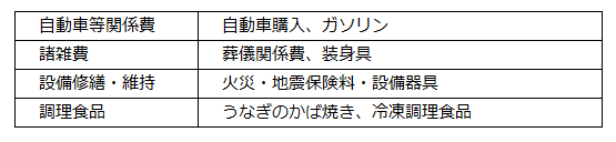 増加項目に「うなぎのかば焼き」が入っているが、8月6日の土用の丑の日が日曜日だったことが消費につながった要因と思われる。